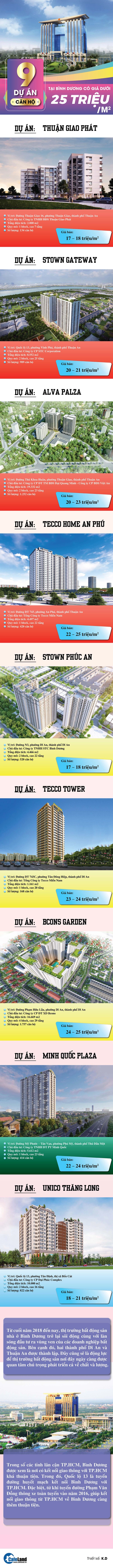 Tổng nguồn cung căn hộ từ những dự án này lên đến hơn 6.000 căn, đang được chào bán với mức giá dưới 25 triệu/m2. Hai thành phố mới Dĩ An và Thuận An là hai địa điểm có số lượng dự án tập trung nhiều nhất.